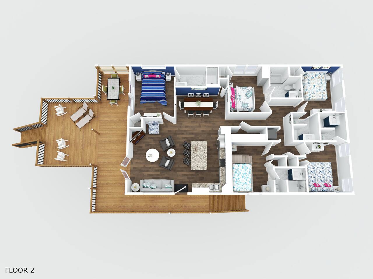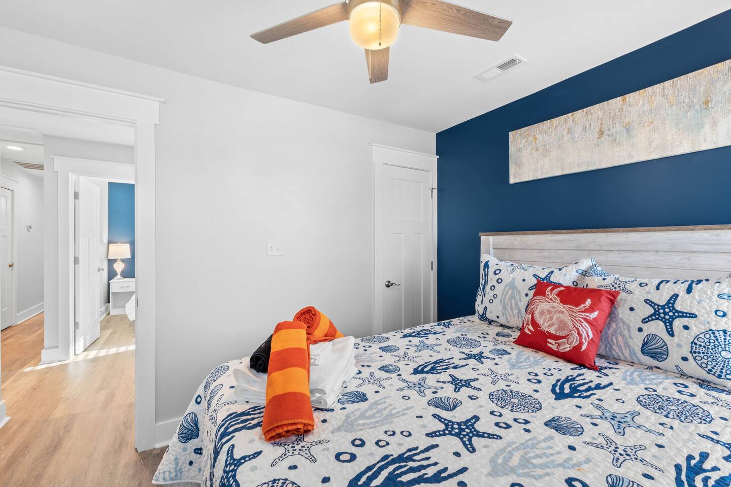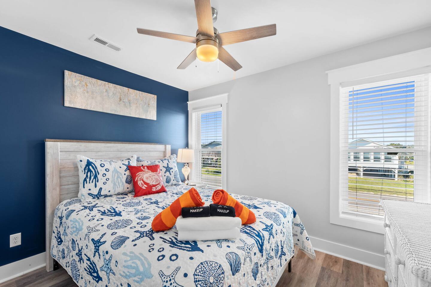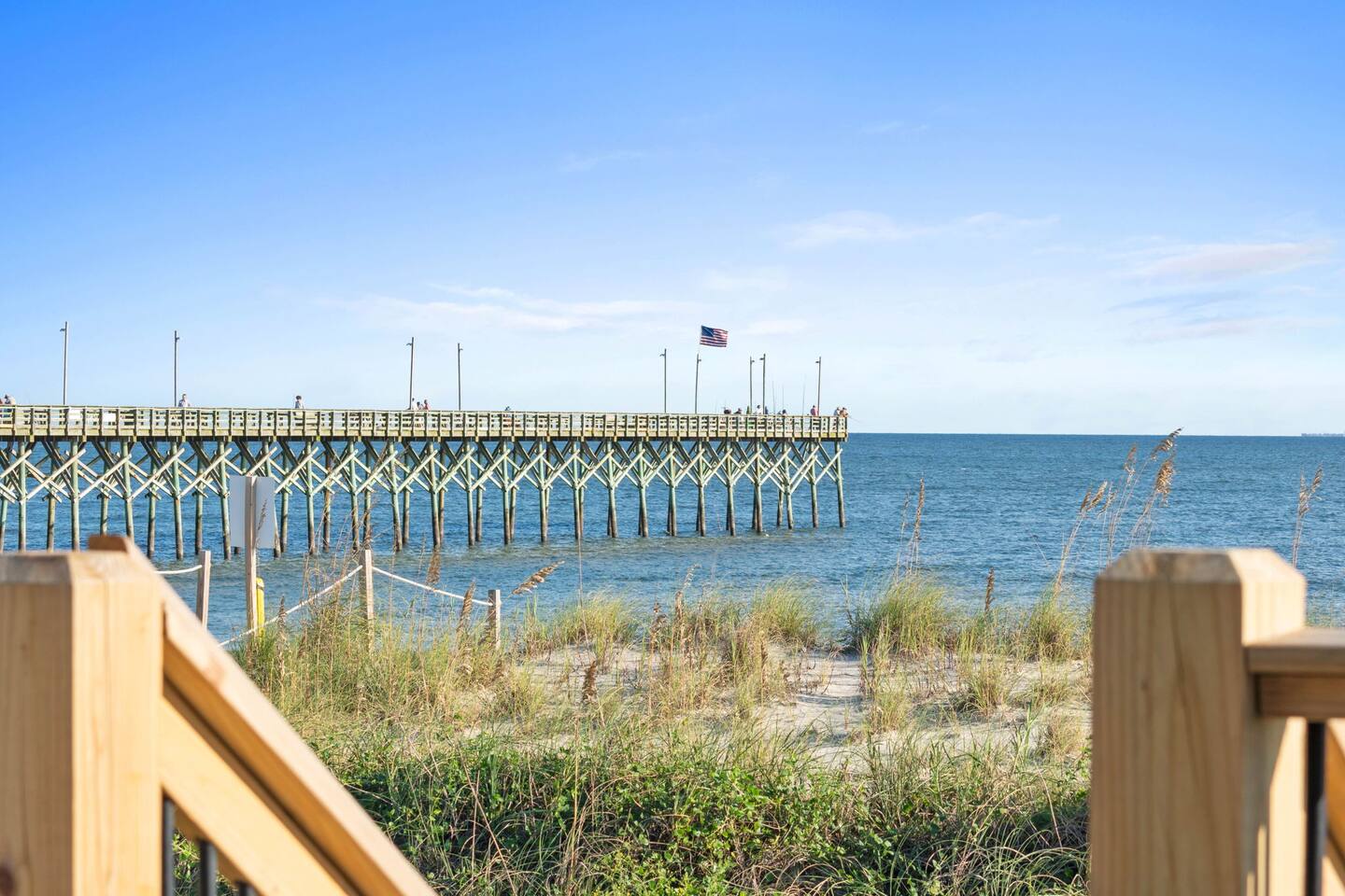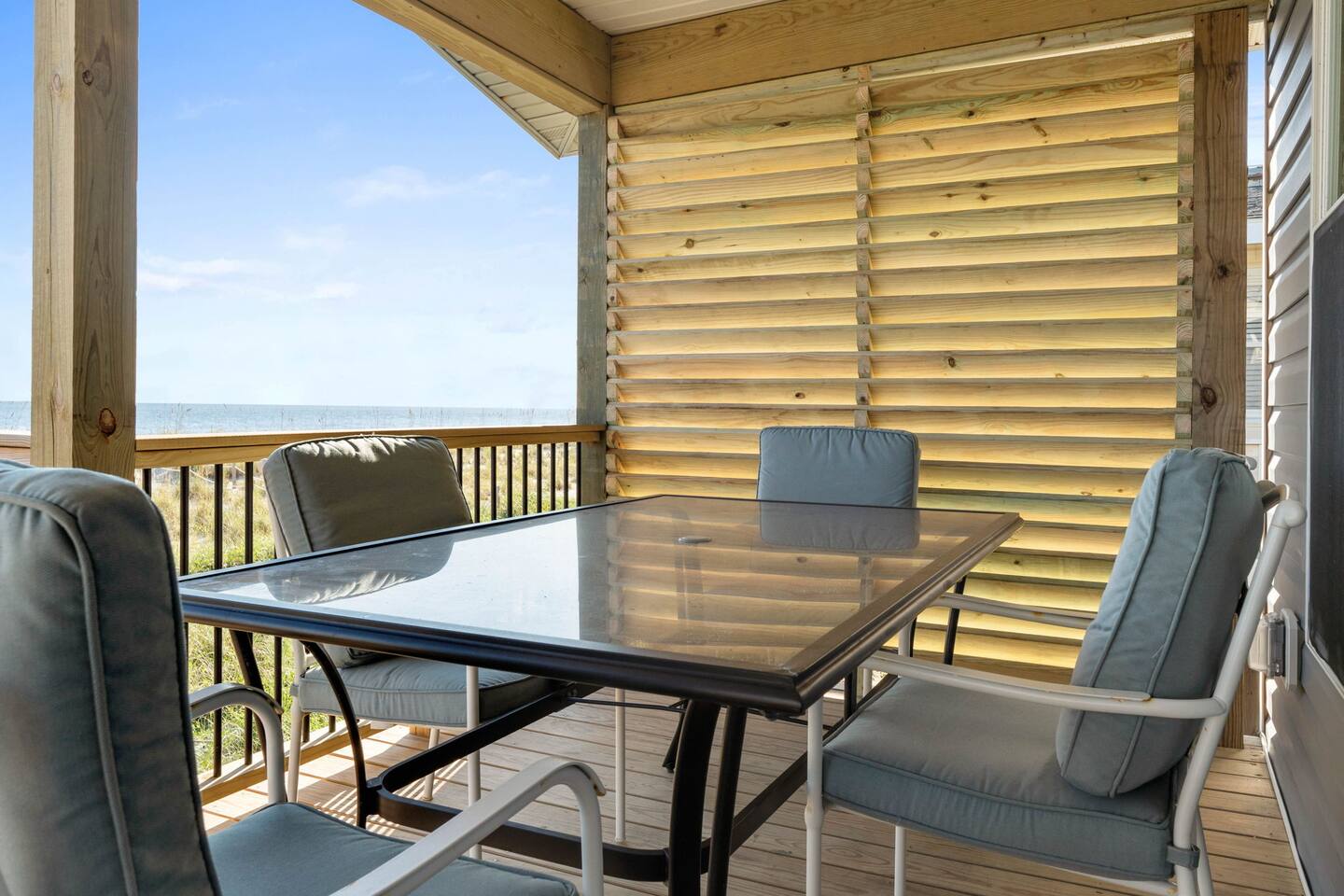 Welcome to Memorable Moments OKI. Completely renovated in 2024. Everything is brand new. 5-bedroom, 5-bath beachfront house (5 master suites). 6 total beds, sleeps 11. Clean & spacious. 1 deck w/ panoramic views. Outdoor shower. Free parking for 4 vehicles (2 covered and 2 uncovered). Direct beach access, soft Oak Island sand just down the front steps. High speed internet, Spectrum cable, smart TVs in all bedrooms. Bring your passwords. Perfect retreat for families or a group of friends. One of North Carolina’s premier beaches. You’ll love the views that Memorable Moments OKI has to offer! **BEDROOMS: Bedroom 1: Master bedroom suite with closet. Large window with oceanfront view. King bed. Walk-in tile shower. Bedroom 2: Queen bed. Shower/tub combo. Bedrooms 3 - 4: Queen bed. Walk-in tile shower. Bedroom 5: Twin XL over queen bunk bed. Walk-in tile shower. All bedrooms are well appointed with flat screen TV's, high speed internet, cable and Roku/ smart tvs. **LIVING ROOM: Living area includes: couch, 3 chairs, dining table for 8, family games and books, 65” flat screen TV, ocean views. **FRONT DECK: The ocean-facing deck offers beautiful ocean and pier views with additional seating. You'll find a convenient dining table, great for outdoor meals or playing board games. **KITCHEN INFO: Modern kitchen with luxury stainless steel appliances including refrigerator, smooth top range, oven, microwave, dishwasher, and kitchen sink. Additional: 4-slot toaster, Kuerig with single serve and drip coffee, additional 12-cup drip coffee maker, French press, coffee grinder, 10-qt crock pot, waffle maker, Oster blender. Kids’ plates, cups and utensils. Generously supplied with all items needed to serve and cook for a large crowd. Bar seating for 3, dining table seating for 8, with additional table seating on the ocean-facing deck. **ADDITIONAL AMENITIES: - Linens provided and beds made, including bath towels - Park style charcoal grill (bring your own charcoal) - Pack-and-Play (please bring your preferred linens for your little one!) - High chair booster seat (collapsible) - Washer and dryer with sample-sized laundry detergent, fabric softener, dryer sheets - Beach amenities – 6 beach chairs, 2 beach umbrellas, 1 beach wagon, beach toys - Foot wash station - Bathroom toiletries – hand soap, soap, shampoo, conditioner, 2 rolls of toilet paper - Welcome/starter kit includes: dish soap, sponge, kitchen towel, roll of paper towels, 2 trash bags, 2 dishwasher pods, sample coffee, tea, creamer, seasonal gift