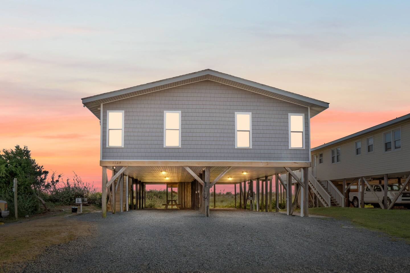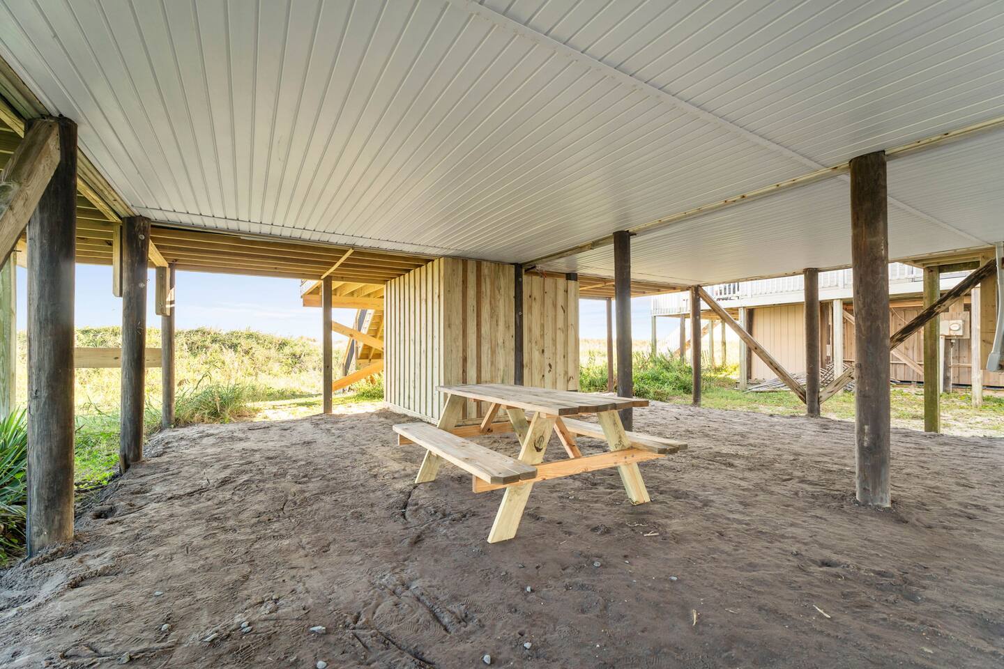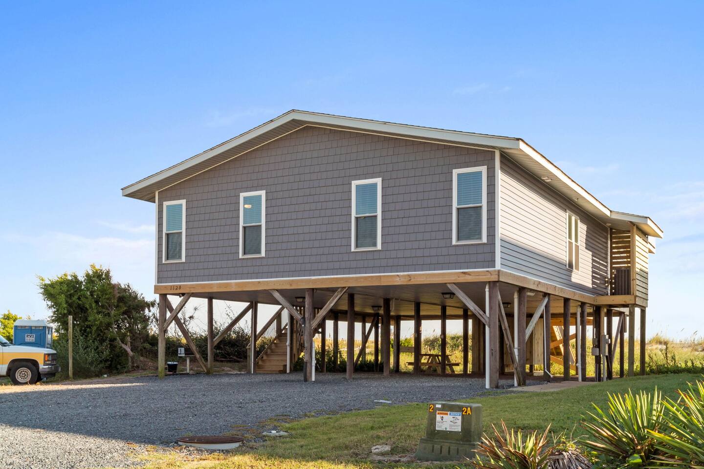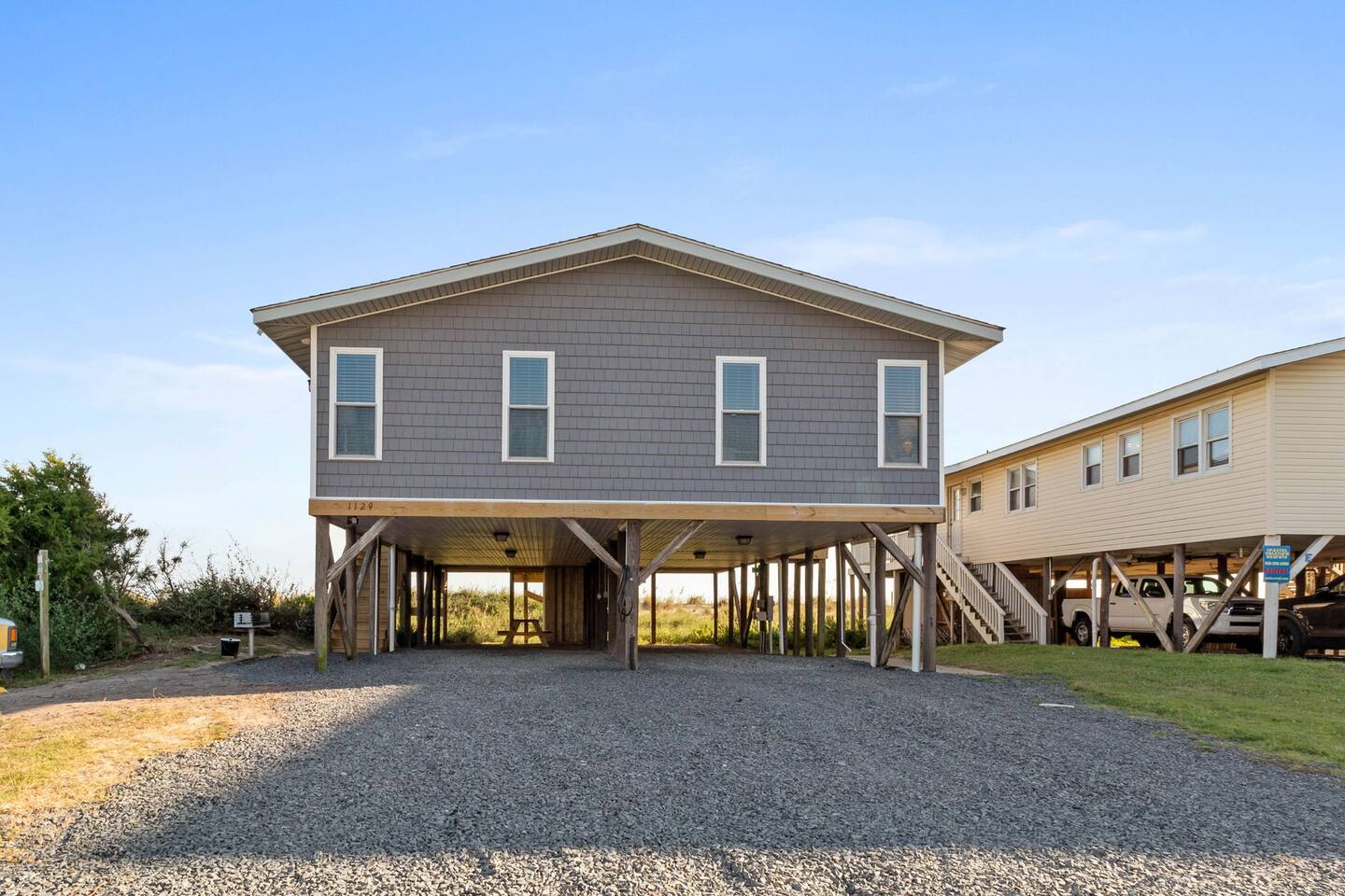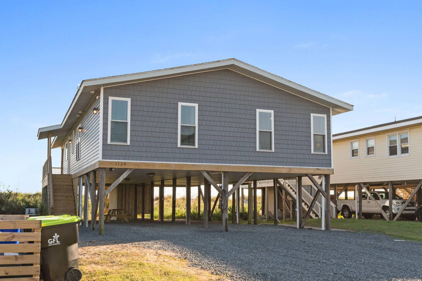 Hot and cold water outdoor shower. Some beach toys available in outdoor storage. ✅ This property has special local compliance requirements which include a signed rental agreement (required in North Carolina), ID verification, and a security hold of $1000 (which is not a traditional security deposit, just a pending transaction). As an optional alternative to the security hold, you may opt in to purchase a non-refundable damage waiver provided by a third-party insurance company. The optional damage waiver is $59 for stays up to 10 nights, with an additional $2 per day for stays longer than 10 nights. Damage waiver purchases are optional. To make this process easy for you, we use a secure and very simple, app-free platform called "Happy Guest". It is not an app, and you do not have to sign up for an account - it’s a safe and secure website. It also gives you a guest portal with all the info about the home and all of my favorite local spots. Weekly rentals with Saturday check-in/out are required from May 30th, 2025 - August 29th, 2026. There is one exterior security camera for your safety and protection. Please do not touch or tamper with the camera.