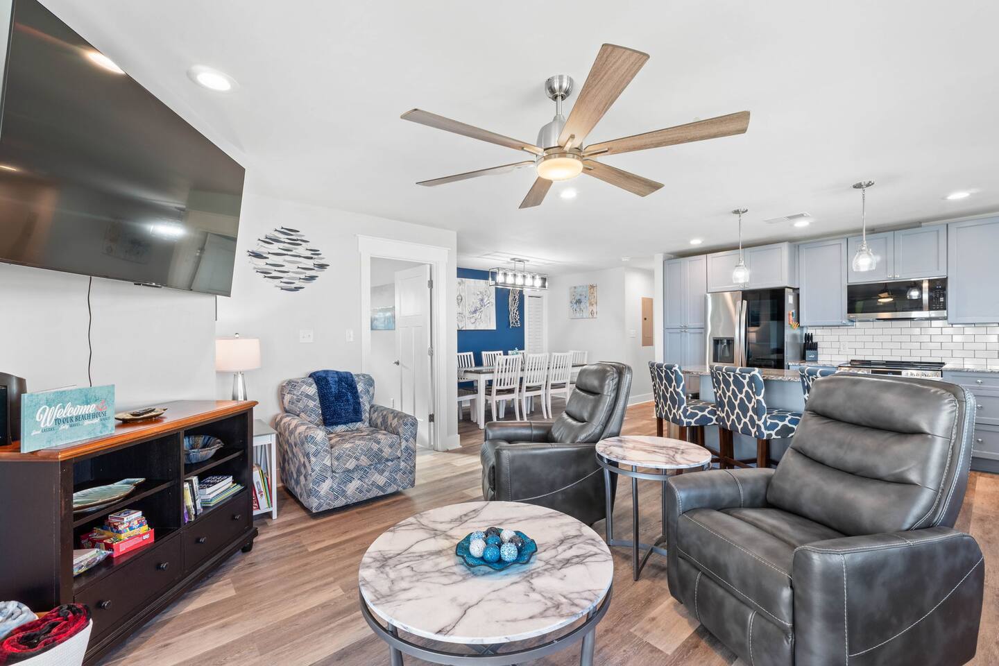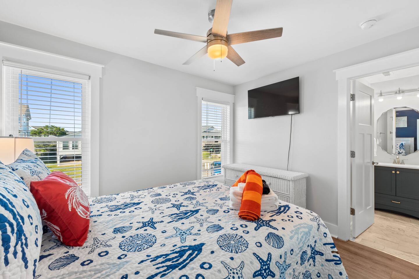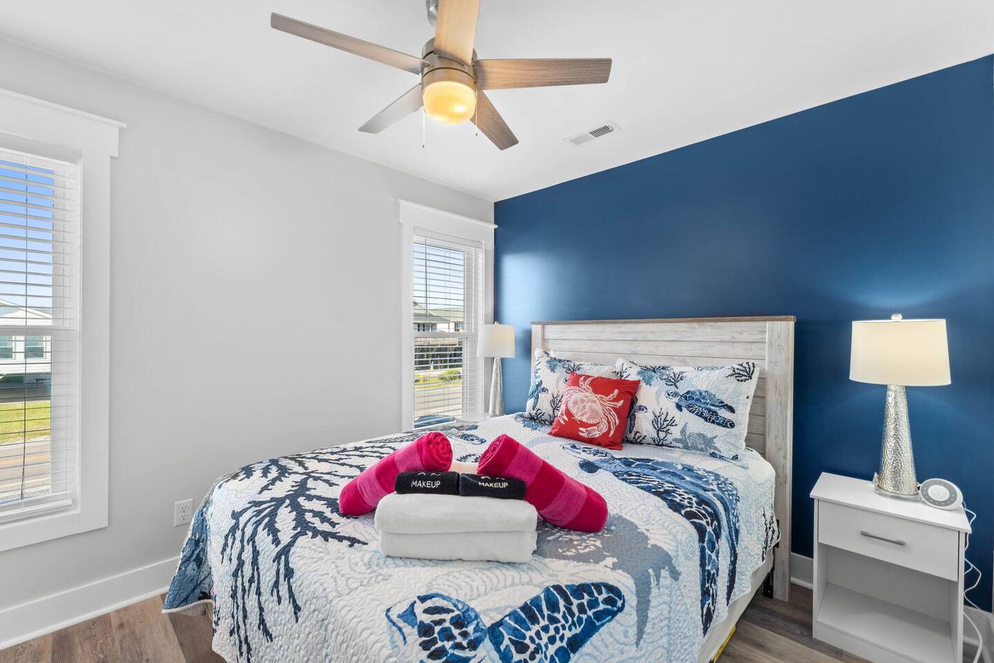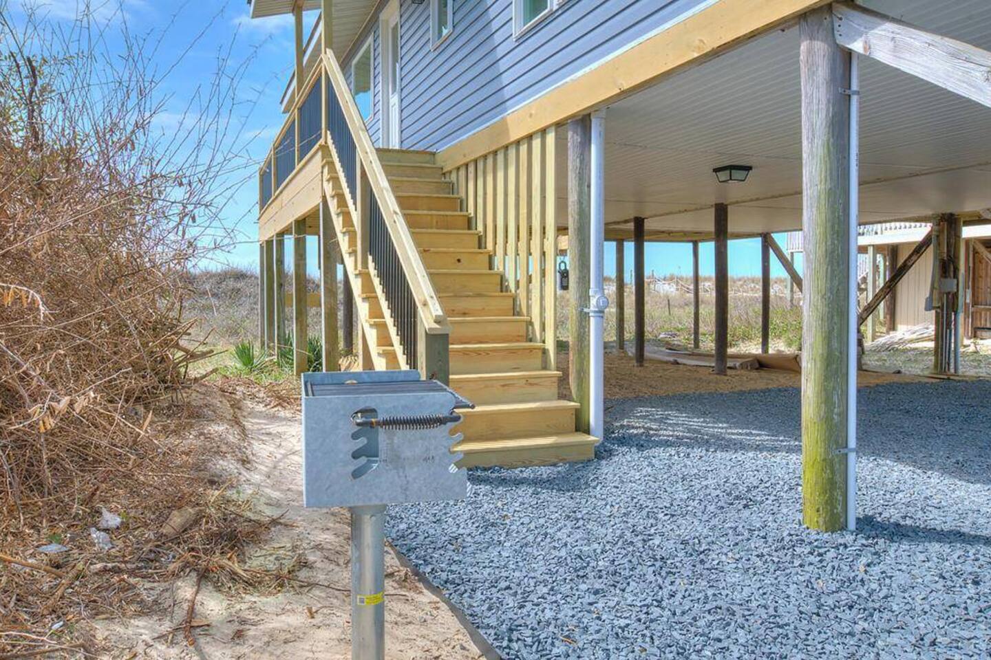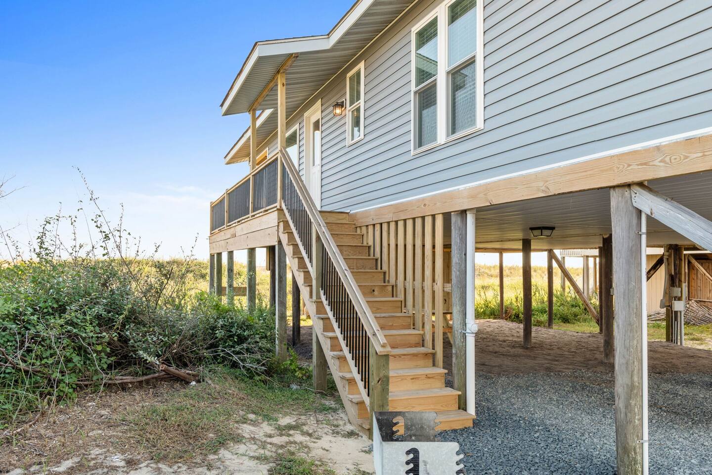 Hot and cold water outdoor shower. Some beach toys available in outdoor storage. ✅ This property has special local compliance requirements which include a signed rental agreement (required in North Carolina), ID verification, and a security hold of $1000 (which is not a traditional security deposit, just a pending transaction). As an optional alternative to the security hold, you may opt in to purchase a non-refundable damage waiver provided by a third-party insurance company. The optional damage waiver is $59 for stays up to 10 nights, with an additional $2 per day for stays longer than 10 nights. Damage waiver purchases are optional. To make this process easy for you, we use a secure and very simple, app-free platform called "Happy Guest". It is not an app, and you do not have to sign up for an account - it’s a safe and secure website. It also gives you a guest portal with all the info about the home and all of my favorite local spots. Weekly rentals with Saturday check-in/out are required from May 30th, 2025 - August 29th, 2026. There is one exterior security camera for your safety and protection. Please do not touch or tamper with the camera.