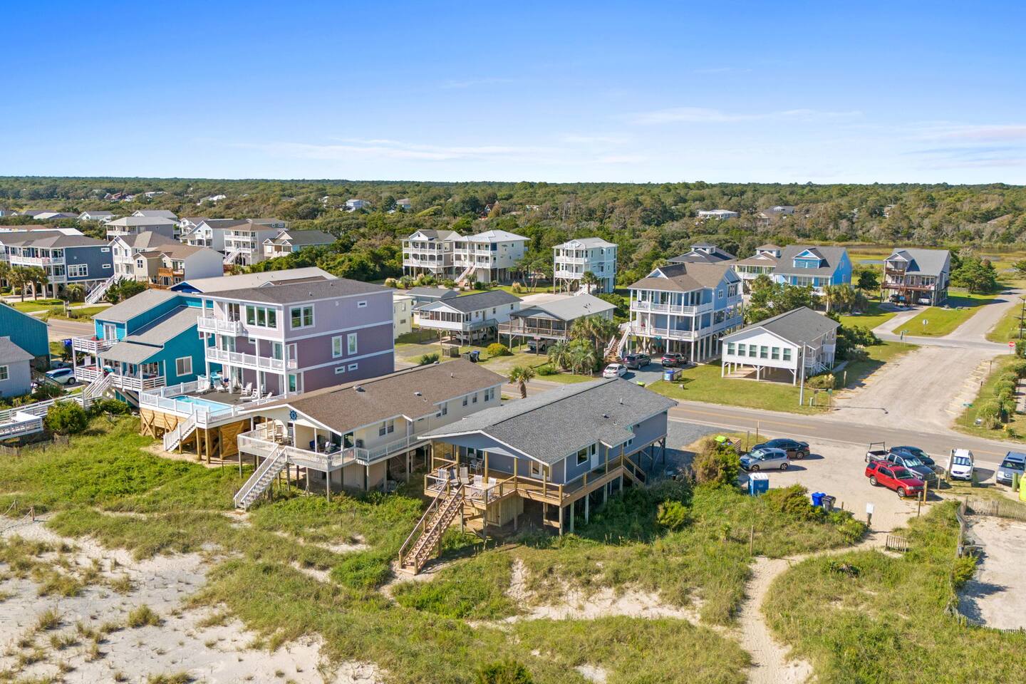 Oak Island is a charming coastal community nestled along the southern coast of North Carolina. Our neighborhood offers a perfect blend of relaxation, natural beauty, and outdoor activities, making it an ideal destination for your beach getaway. Located on the barrier island of Oak Island, you'll have direct access to miles of pristine sandy beaches. Take a leisurely stroll or go for a morning jog along the shore, soak up the sun, or simply unwind with a good book as you listen to the sound of the waves crashing against the shore. Nature enthusiasts will appreciate the abundant wildlife and natural surroundings that Oak Island has to offer. Explore the picturesque marshes and creeks, go birdwatching, or take a kayak or paddleboard excursion to discover the area's diverse ecosystem. If you're a fishing enthusiast, you're in luck! Oak Island is renowned for its excellent fishing opportunities. Cast a line from the pier, charter a fishing boat for an offshore adventure, or try your luck surf fishing along the shoreline. Our neighborhood is also home to a variety of charming local shops, restaurants, and cafes. Sample fresh seafood at one of the waterfront eateries, indulge in homemade ice cream, or browse the boutiques and art galleries for unique souvenirs. For those seeking more adventure, venture beyond Oak Island to explore the nearby attractions. Take a short drive to Southport, a quaint coastal town with historic charm, browse the shops and dine at the waterfront restaurants. You can also visit the nearby Bald Head Island, accessible by ferry, known for its unspoiled beaches and nature preserves. At the end of the day, return to our peaceful neighborhood, unwind on the oceanfront porch, and savor the beautiful sunsets that paint the sky over Oak Island. Whether you're seeking relaxation, outdoor adventures, or simply a beachside retreat, our neighborhood in Oak Island offers the perfect backdrop for a memorable vacation.