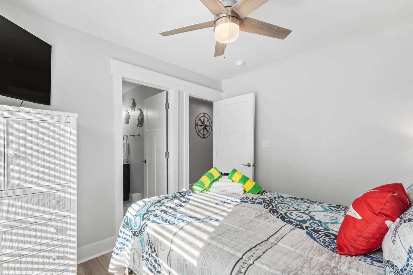 You'll have access to the entire home. There is one closet locked in the main hallway with a deadbolt lock. This closet contains our cleaner's supplies and personal items. Free on-site parking